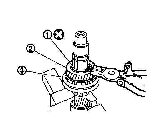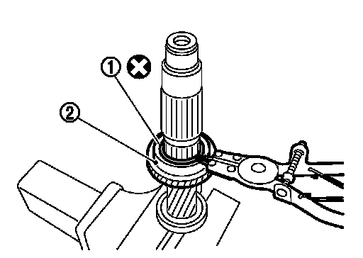 - For removal of snap ring, set snap ring pliers and flat pliers at both sides of snap ring. While expanding snap ring with snap ring pliers, move snap ring with flat pliers.