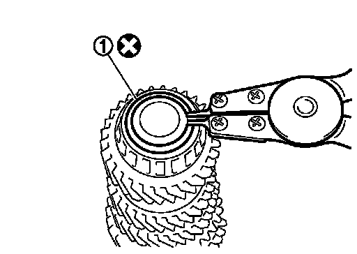 - For removal of snap ring, set snap ring pliers and flat pliers at both sides of snap ring. While expanding snap ring with snap ring pliers, move snap ring with flat pliers.