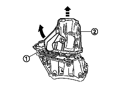 7.Remove transaxle case (2) while rotating shifter lever A (1) in the direction as shown in the figure.
