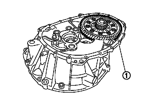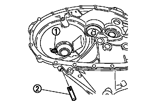 17.Remove differential side bearing outer race (1) from clutch housing, using a brass rod.