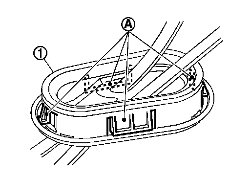 18.Disengage the pawls (A) of the grommet (1), and pull downwards to remove.