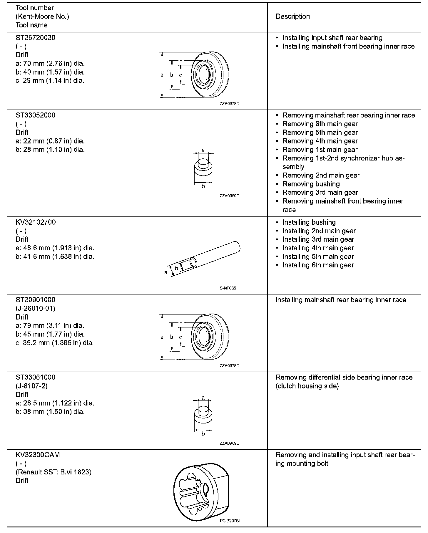 The actual shapes of Kent-Moore tools may differ from those of special service tools illustrated here.