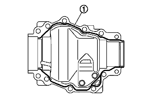 12.Apply liquid gasket (1) to mating surface of transfer cover.