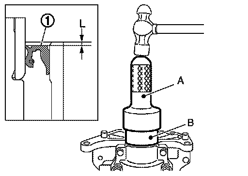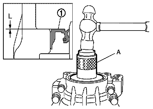 16.Using the drifts (A) [SST: ST-35271000 (J-26091)], install transfer case oil seal (right) (1) within the dimension (L) shown as follows.