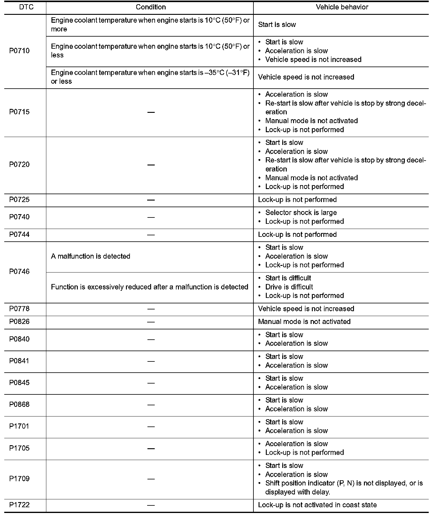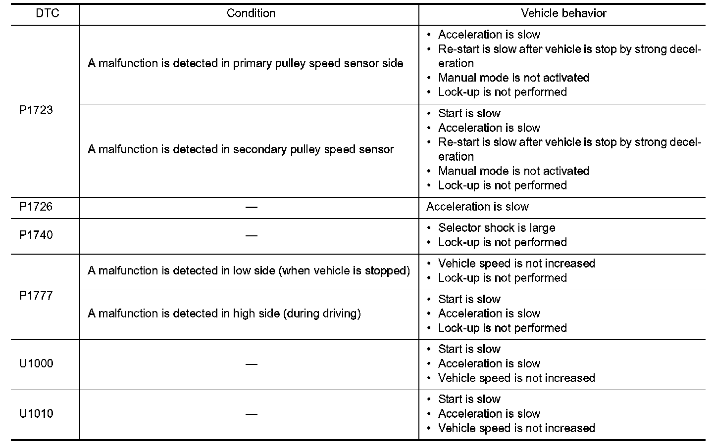When a malfunction is detected in each sensor, switch, solenoid or others, this function provides control to minimize reduction of drivability so that durability of transmission assembly can be acquired.