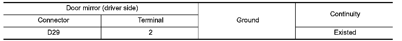 2.Check continuity between door mirror (driver side) harness connector and ground.