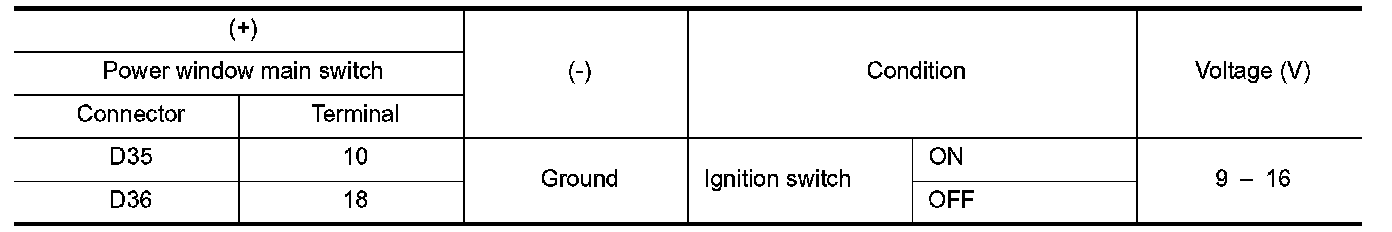 2.Check continuity between power window main switch harness connector and ground.