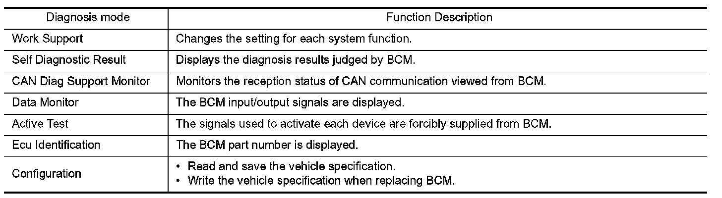 DIAGNOSIS SYSTEM (BCM) (WITHOUT INTELLIGENT KEY SYSTEM)