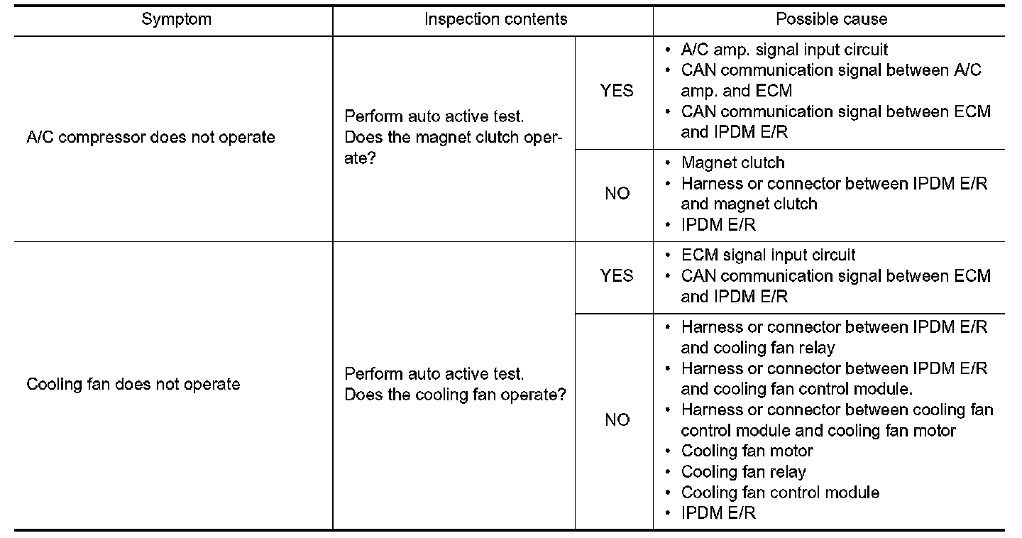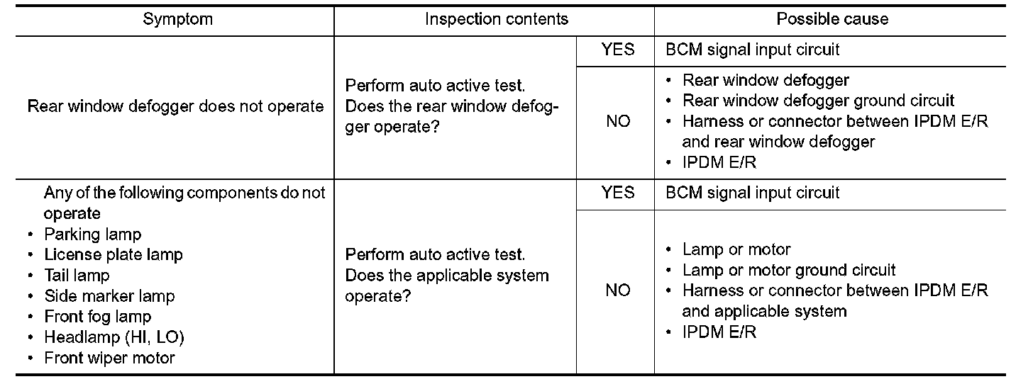 - The auto active test facilitates troubleshooting if any systems controlled by IPDM E/R cannot be operated.