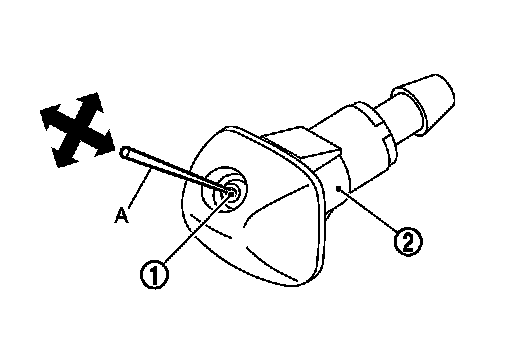 If wax or dust gets into the spray opening of rear washer nozzle (2), remove wax or dust with a needle or small pin.