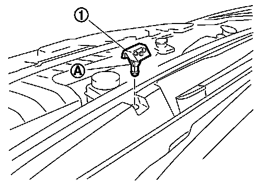 3.While pressing pawl (A) on the cowl top cover front side of front washer nozzle (1), remove front washer nozzle from cowl top cover.