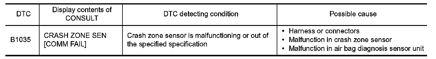 1.Replace crash zone sensor. Refer to "Removal and Installation" Removal And Installation.