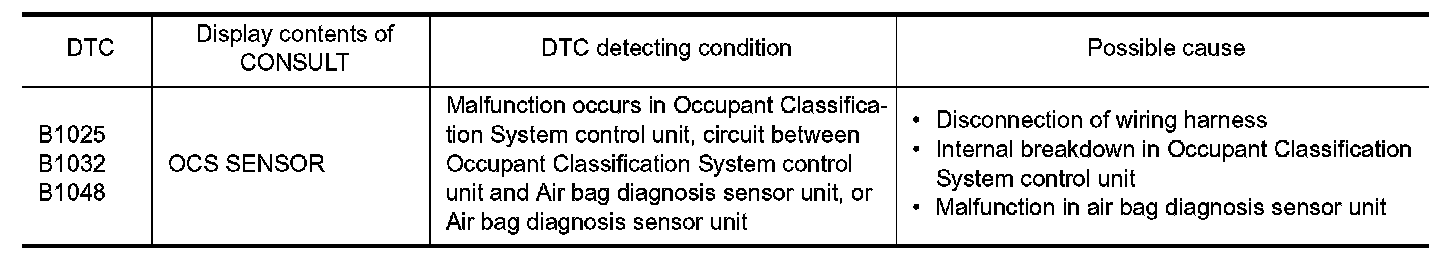 1.Replace air bag diagnosis sensor unit. Refer to "Removal and Installation" Removal And Installation.