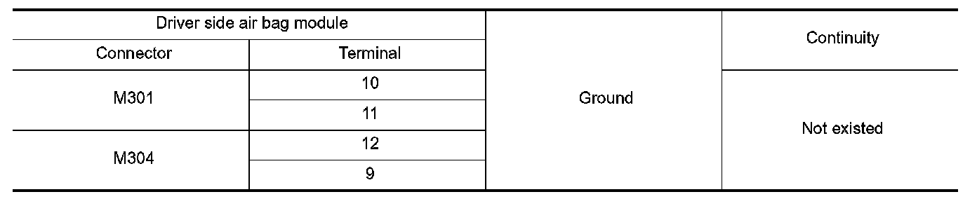 4.Check continuity between driver air bag module harness connector and ground.