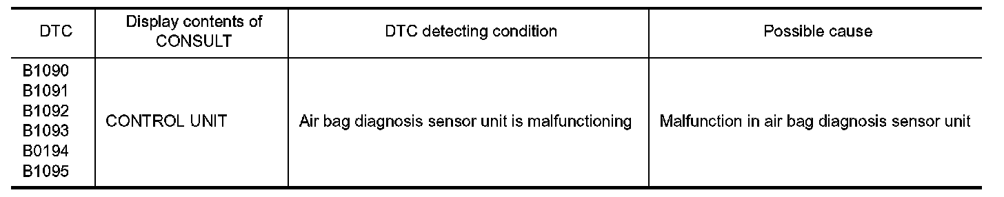 1.Replace air bag diagnosis sensor unit. Refer to "Removal and Installation" Removal And Installation.