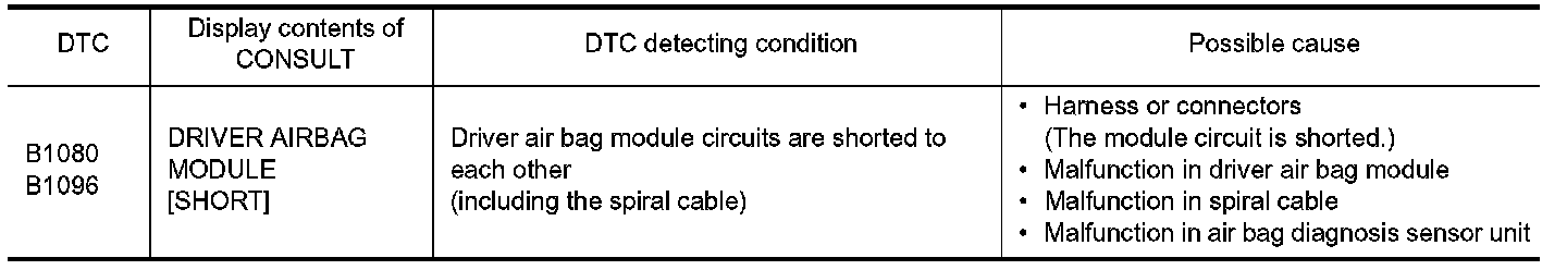 1.Replace air bag diagnosis sensor unit. Refer to "Removal and Installation" Removal And Installation.