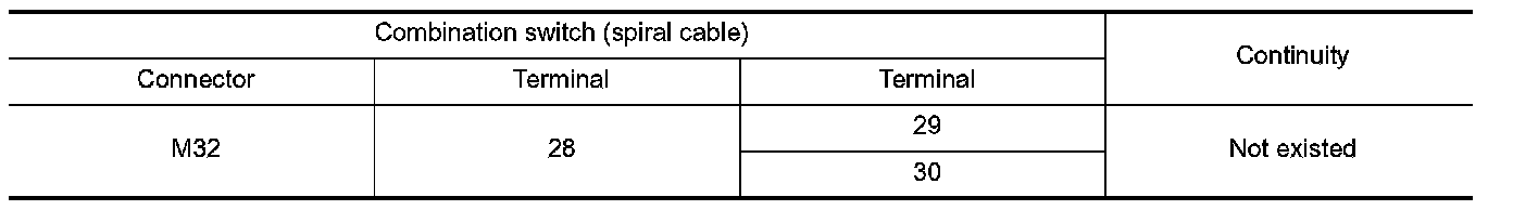 3.Check continuity between combination switch (spiral cable) terminals.