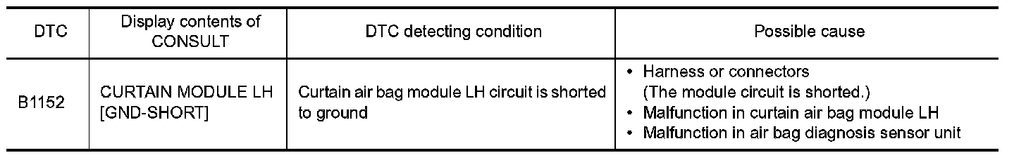 1.Replace curtain air bag module LH. Refer to "Removal and Installation" Removal And Installation.