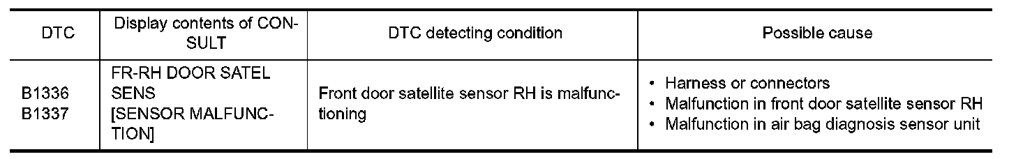 1.Replace front door satellite sensor RH. Refer to "Removal and Installation" Removal And Installation.