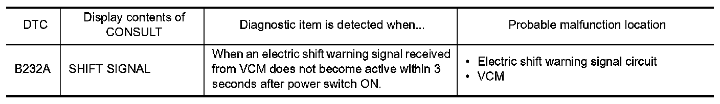 VCM outputs the electric shift warning signal to the combination meter.