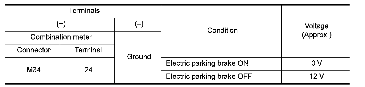 - The electric parking brake control module transmits the electric parking brake indicator signal to the combination meter via CAN communication.