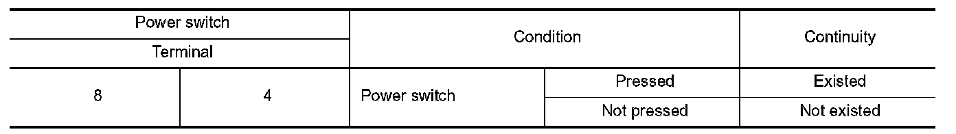 NO- Replace power switch. Refer to "Removal and Installation" Power Switch.
