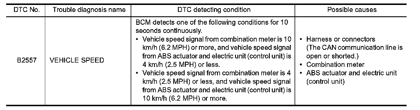 - If DTC B2557 is displayed with DTC U1000, first perform the trouble diagnosis for DTC U1000. Refer to