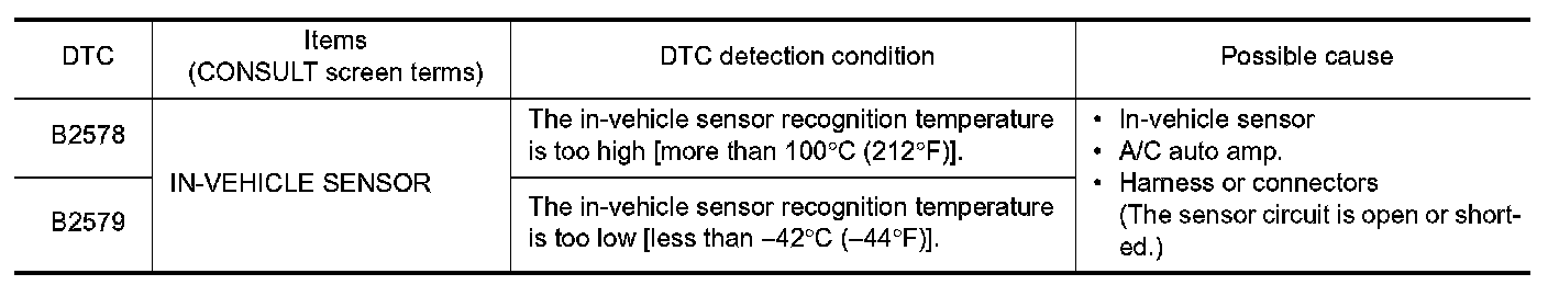 Check in-vehicle sensor. Refer to "Component Inspection" .