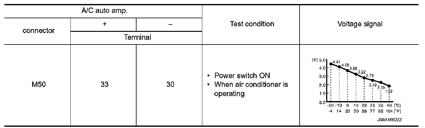 3.Read voltage signal between A/C auto amp. harness connector terminals.