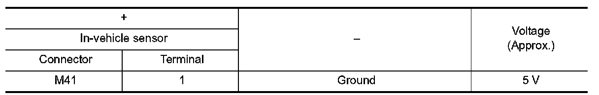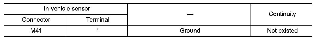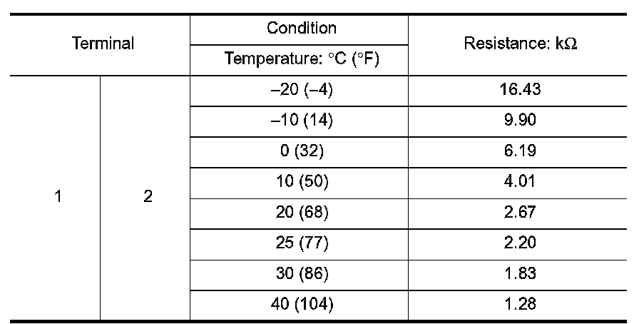 2.Check resistance between in-vehicle sensor terminals. Refer to applicable table for the normal value.