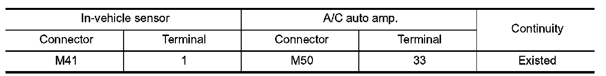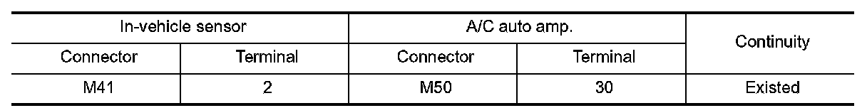 3.Check continuity between in-vehicle sensor harness connector and A/C auto amp harness connector.