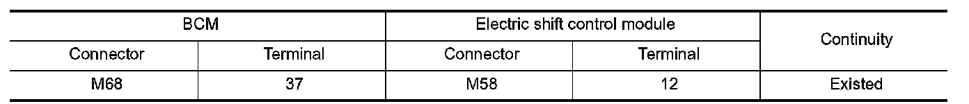 4.Check continuity between BCM harness connector and electric shift control module harness connector.