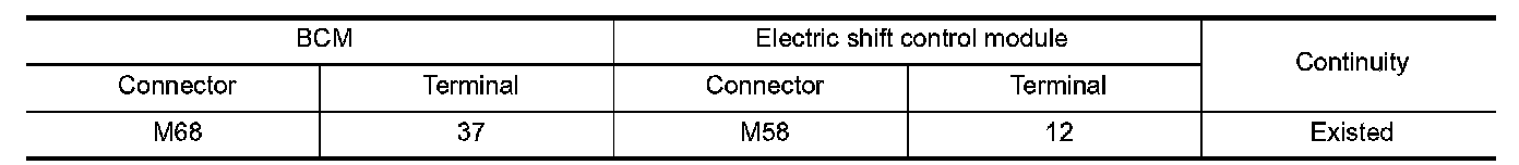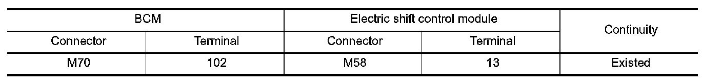 4.Check continuity between BCM harness connector and electric shift control module harness connector.