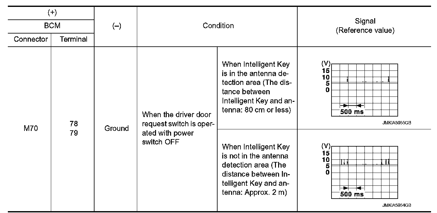 2.Check signal between BCM harness connector and ground using oscilloscope.