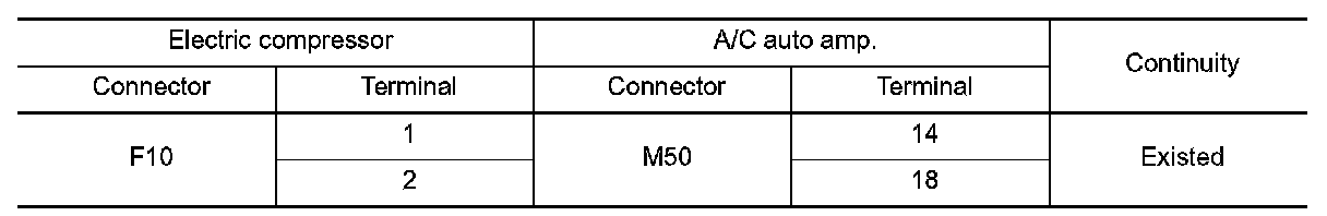 3.Check continuity between electric compressor harness connector and A/C auto amp. harness connector.
