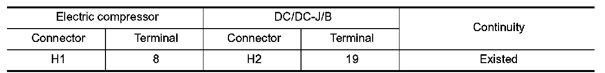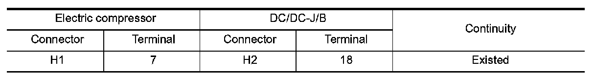 Check continuity between electric compressor high voltage harness connector and DC/DC-J/B high voltage harness connector.