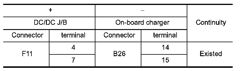1.Check the continuity between DC/DC junction box harness connector and on-board charger harness connector.
