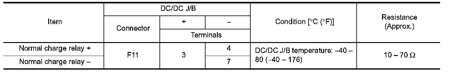 Check the resistance between DC/DC junction box connector terminals.