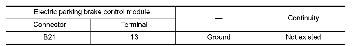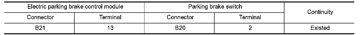 4.Check the continuity between electric parking brake control module harness connector and parking brake switch harness connector.