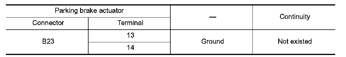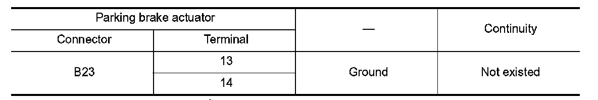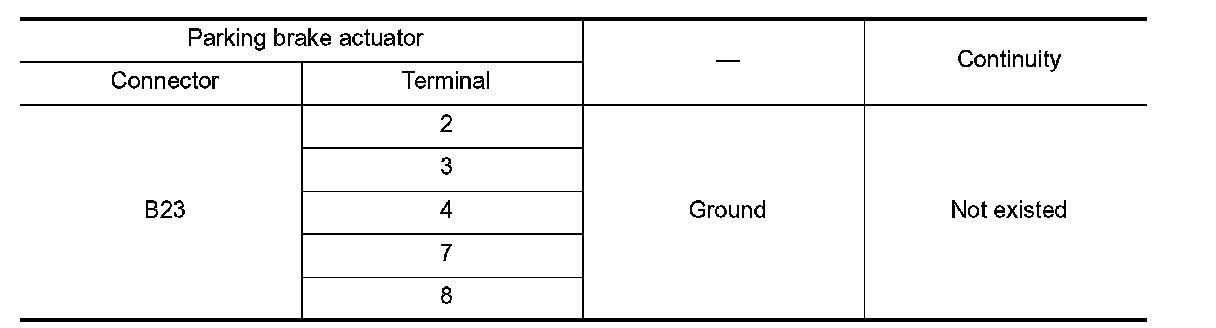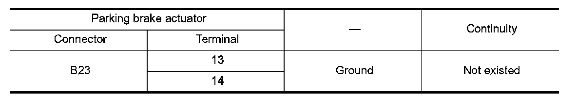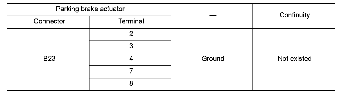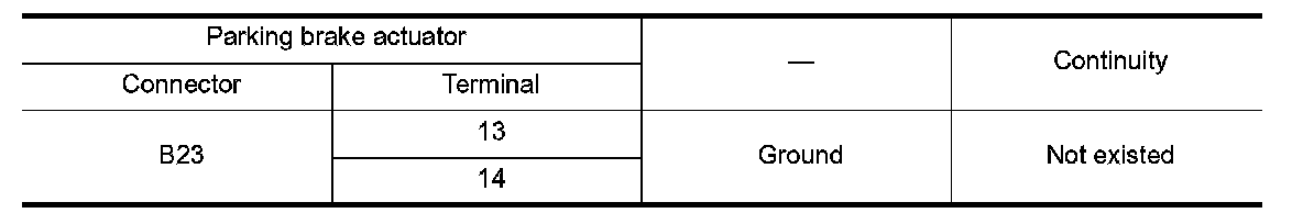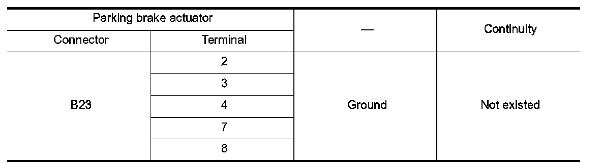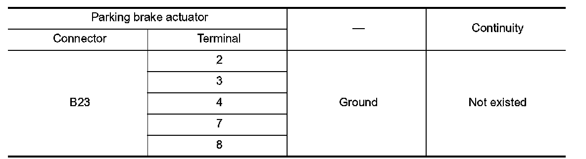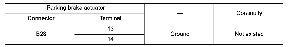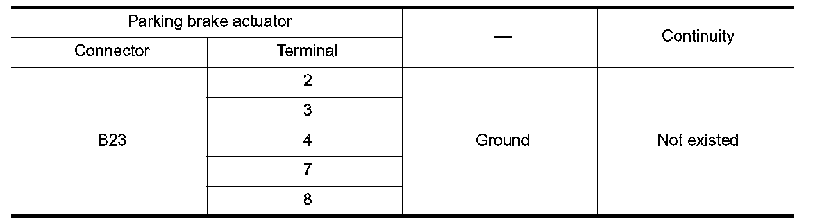 1.Check the continuity between parking brake actuator and electric parking brake control module harness connector.