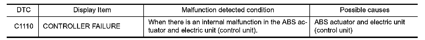 Replace ABS actuator and electric unit (control unit) even if other display than "C1110" is displayed in selfdiagnosis for "ABS".