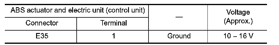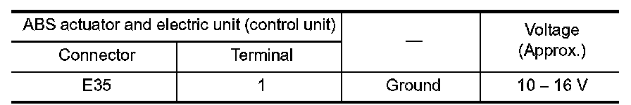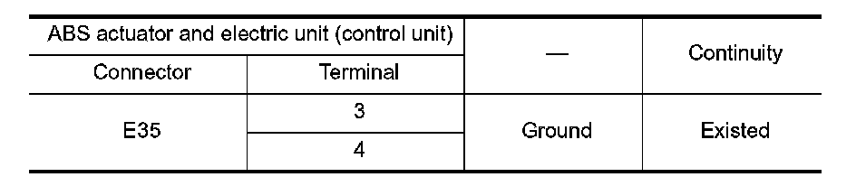 2.Check the continuity between ABS actuator and electric unit (control unit) harness connector and the ground.