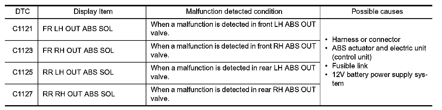 C1121, C1123, C1125, C1127 ABS OUT VALVE SYSTEM