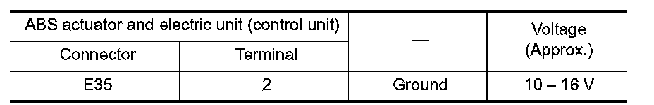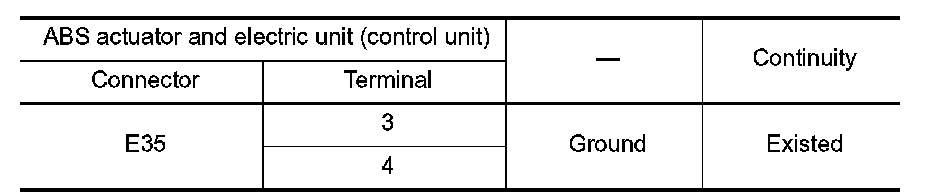 2.Check the continuity between ABS actuator and electric unit (control unit) harness connector and the ground.