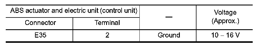 Check the ABS actuator and electric unit (control unit) pin terminals for damage or loose connection with harness connector.