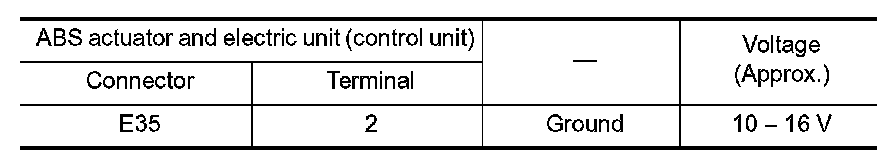 2.Check the continuity between ABS actuator and electric unit (control unit) harness connector and the ground.