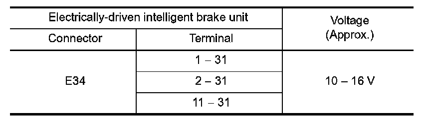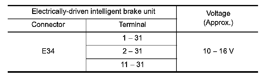 6.Check the voltage between the electrically-driven intelligent brake unit harness connector terminals.