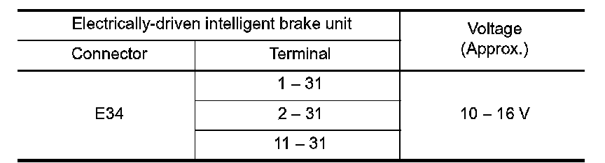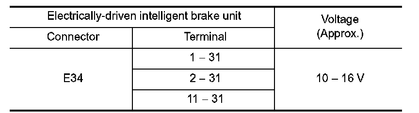 6.Check the voltage between the electrically-driven intelligent brake unit harness connector terminals.
