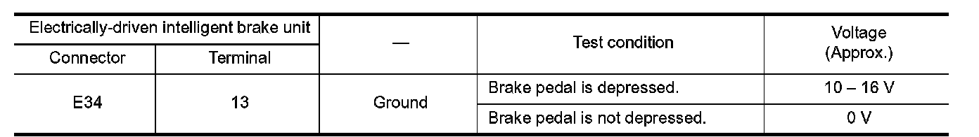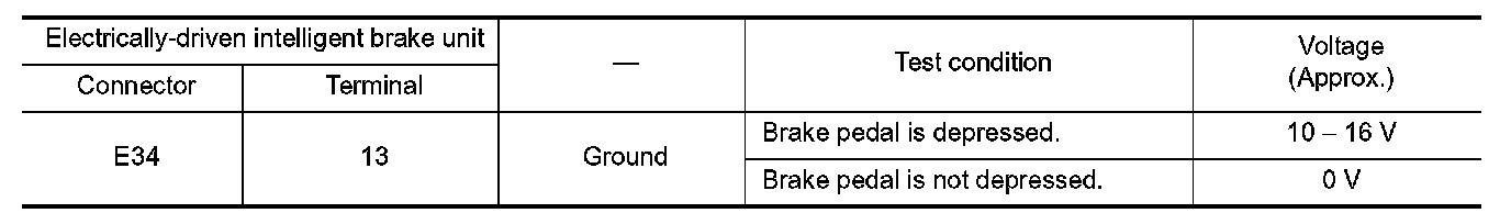 6.Check the voltage between the electrically-driven intelligent brake unit harness connector and ground.