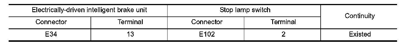 5.Check the continuity between electrically-driven intelligent brake unit and stop lamp switch harness connector.